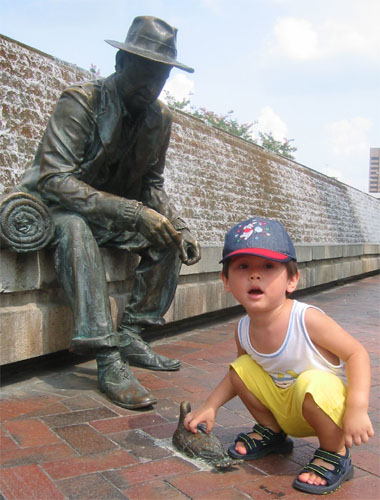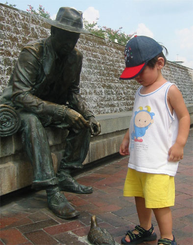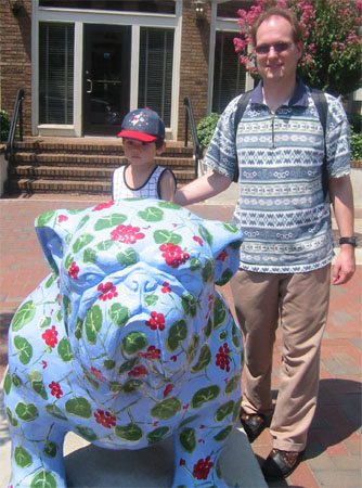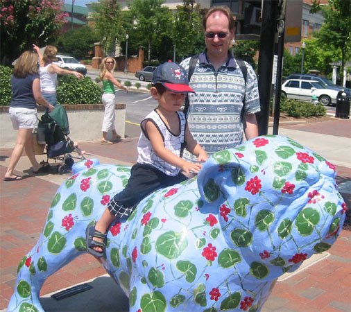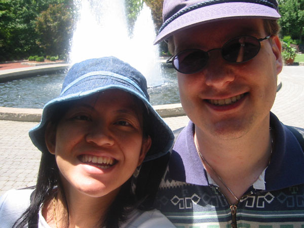 8/7/04 - 背景是U. of Georgia at Athens的校園。整個Athens可以說是個大學城,除了校園,還是校園,可惜離得有點兒遠,開車要兩個多小時,不然媽媽倒是可以考慮再回學校當學生!很久沒有這麼悠哉走在校園了,感覺真不錯!