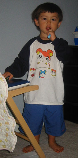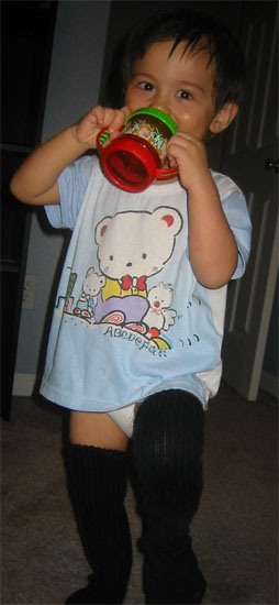 10/14/04 - 弟弟乖,睡覺前喝水水.......... 不喝?!灌給你喝!!