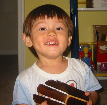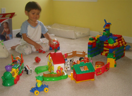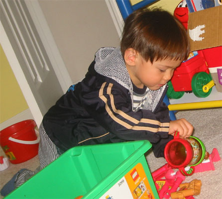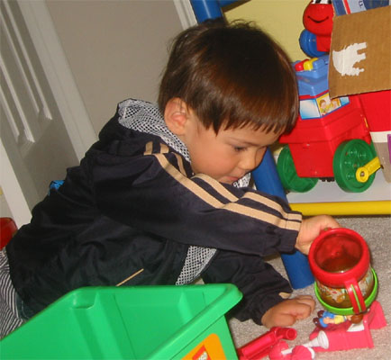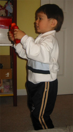 10/17/04 - Luka一邊聽著平面小火車唱歌,一邊很高興地也唱唱跳跳