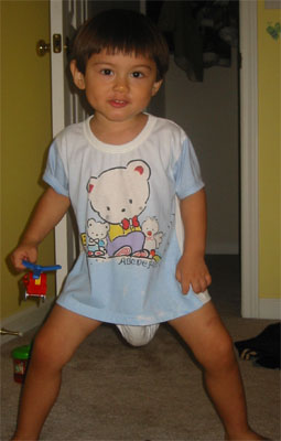 上衣非常缺乏,只好穿上這件阿媽去年買的,大概Luka4歲穿才剛 Luka樂得很,當天晚上就穿著睡覺