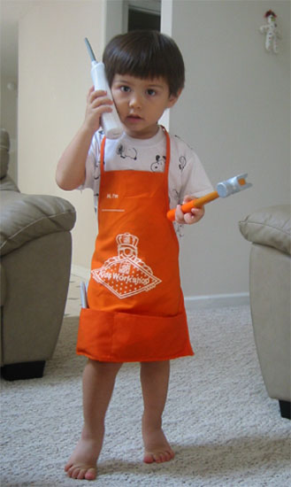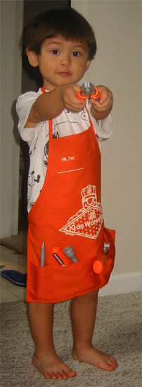 10/2/04 - 小小handy man要來工作了! 「喂,姨@#$%^&**(&$#%&.........」OK,大姨的家需要Luka handyman幫忙敲敲打打一番