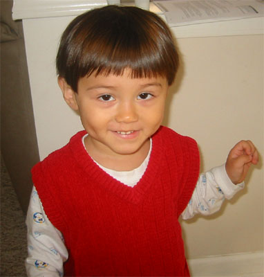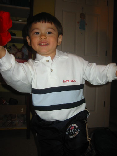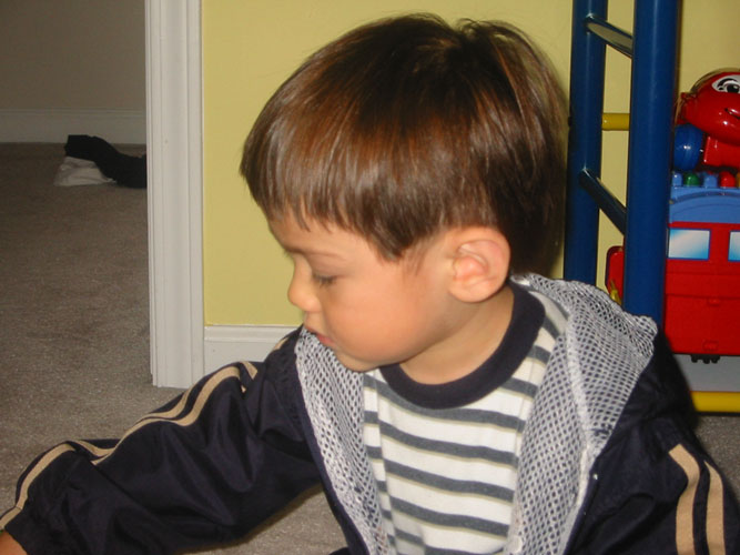 10/14/04 - 很少注意Luka的側面。雖然跟大人比起來,Luka的鼻鼻一點兒也不高,不過那天在音樂班時,突然發現不管白皮膚寶寶、黃皮膚寶寶,Luka竟然是所有小朋友中,鼻子最挺的!看樣子爸爸說鼻子會一直長高倒是不假,看樣子Luka也會有像爸爸一樣的高鼻子!