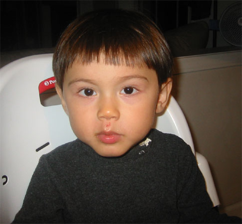 好像變笨的樣子,也還記得爸爸媽媽。只有鼻子下面有一些擦傷,不過也早就復原了