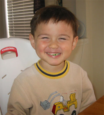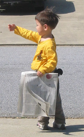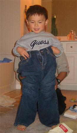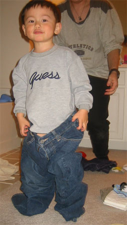 3/12/05 - Luka會自己穿褲褲喔! 嗯,好像太大了點兒!