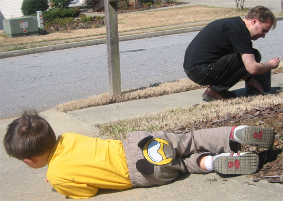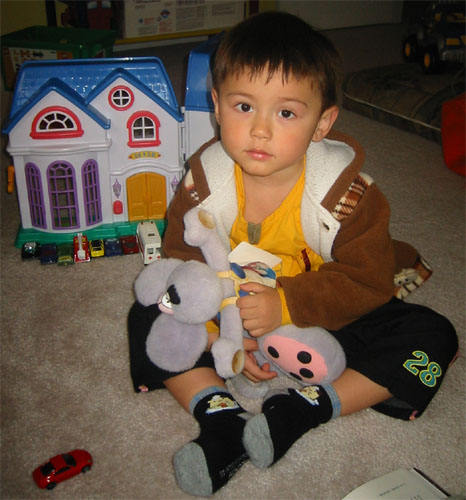3/15/05 - Luka要求要跟Diddle和弟弟家和停好的車車們一起照相......怎麼覺得他的表情挺哀怨的啊!