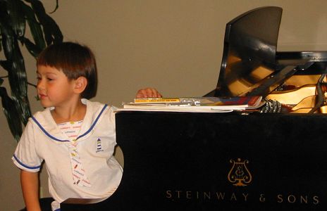 小朋友可以選擇用鍵盤表演,或是這台貴貴的Steinway & Sons grand piano表演,Luka當然馬上選後者