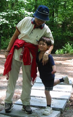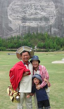 6/8/07 - 爺爺和阿媽五月31號抵達亞特蘭大,計畫在這兒待一個月。 雖然六月的亞特蘭大早晚氣溫非常宜人,多在攝氏20度以下,可是一過中午,氣溫仍會飆到攝氏30度以上,且艷陽高照!於是怕曬黑的阿媽只有早晚敢出門散步運動,白天有大太陽時則在家看書培養氣質〈沒辦法,家裡半個電視頻道也沒,沒電視可看〉 這天早上早餐吃完,看天色陰陰的,趕緊收拾妥當,往亞特蘭大附近的旅遊勝地石頭山Stone Mountain出發。走走晃晃一個多小時,順便把水果都解決後,已經差不多中午,陽光開始毒辣,於是打道回府,繼續培養氣質。底下八張照片都是在石頭山,Luka照相愈來愈會耍寶了。這個暑假發現Luka很喜歡跟爺爺去爬山,不過不能說爬山,要說去探險。