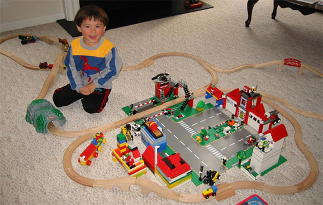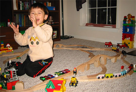 1/9/06 - 每星期日吸地板前,Luka的小鎮都會被拆掉,之後又重蓋新造型。這一個是媽媽設計的。下次把這星期Luka自己設計的放上來。