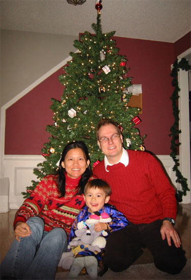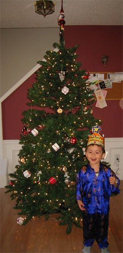 12/24/05 - 聖誕節囉!聖誕樹當然要先佈置好,Luka今年開始幫忙佈置,Luka身高以下的吊飾都是由他負責佈置的喔!佈置完Luka很興奮地也要幫媽媽照相,有一點兒歪,不過技術還算可以啦