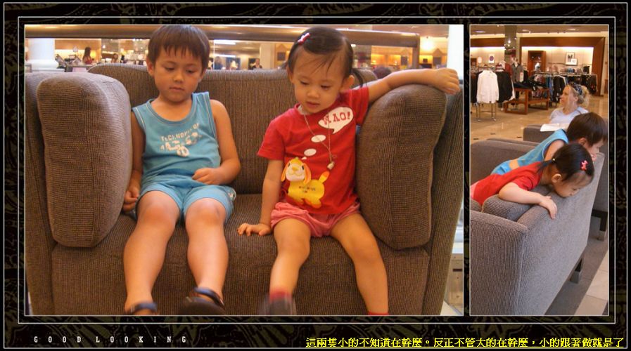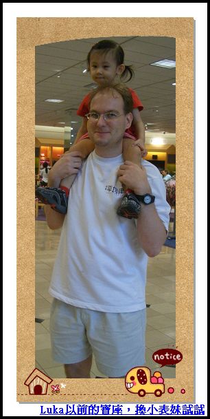 8/21/07 - 媽媽傍晚要去Luka學校參加開學老師的課程說明會,Luka沒有媽媽在旁邊是不肯睡覺的,爸爸又出差去,無法去課程說明會。沒辦法,乾脆全部人都載到購物街去逛,等媽媽結束再全部一起載回家睡覺