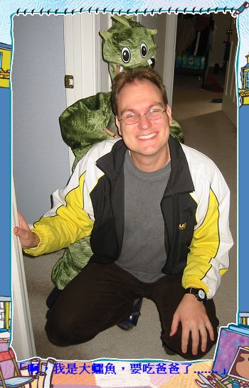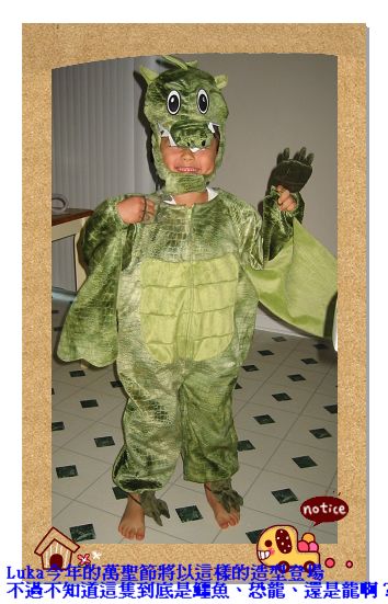 10/31/07 - 萬聖節囉!一放學回家Luka就換上他的鱷魚裝,我們到附近的購物街Trick or Treats去!〈Luka晚上7點上床睡覺,所以拿燈籠在社區裡沿門按電鈴是不可能啦〉