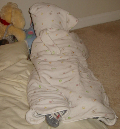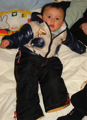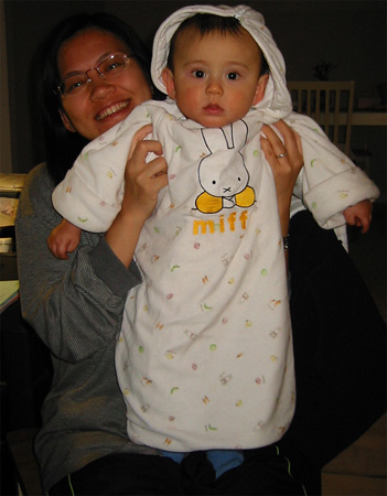 3/6/03 - 在台灣逛街時看到的睡衣,很溫暖很可愛,最重要的是Luka可以穿著它一邊睡覺一邊爬行、滾動,不用擔心著涼,很好用喔!