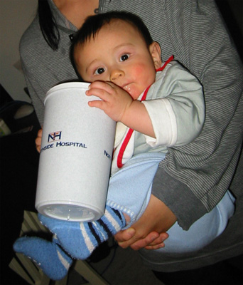 3/3/03 - 爸爸的大杯子甜甜的,好好吃! Luka的睡衣被水水稀稀的便便用髒了, 3/5/03 - 病娃娃終於又有活動力了!