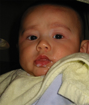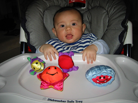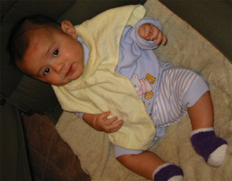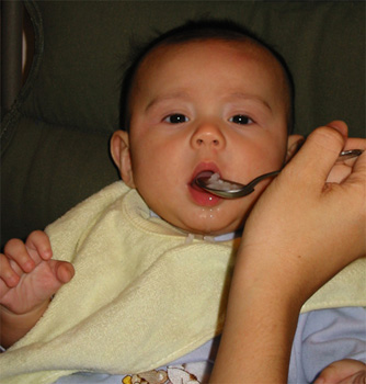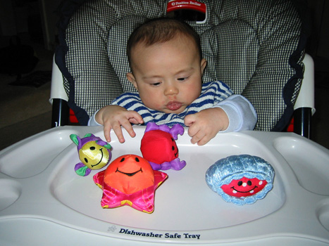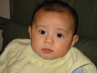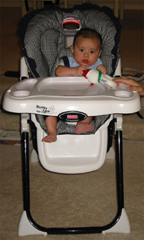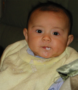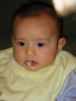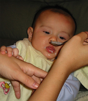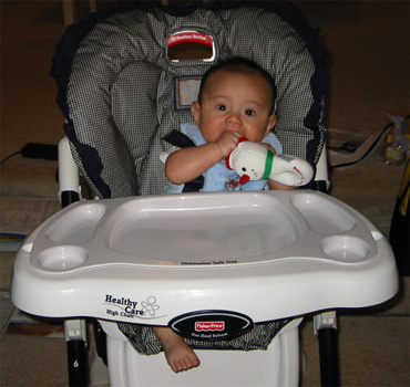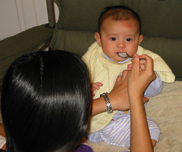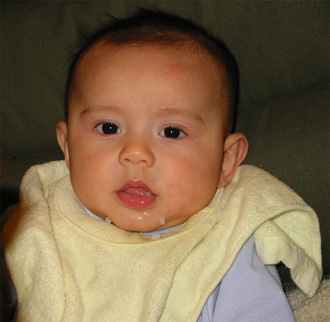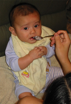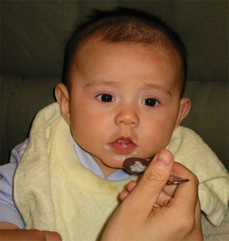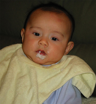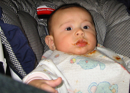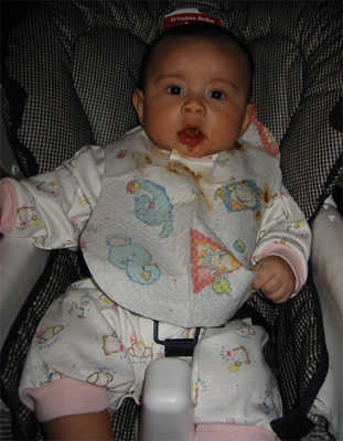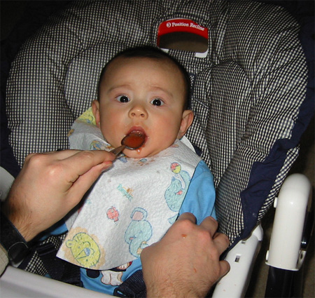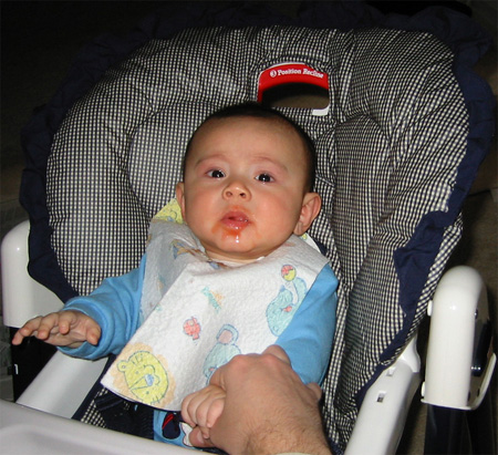 11/23/02 - Luka的第一餐副食品,目前為止全身上下都還很乾淨。
