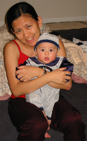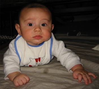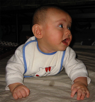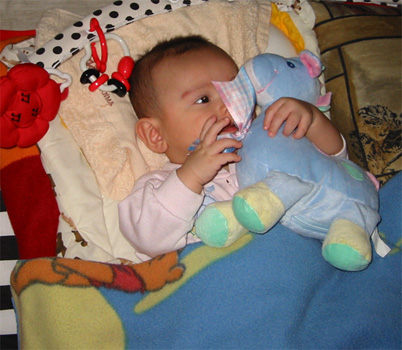 11/24/02 - 清晨6, 7點,"小"老闆要睡大床 11/24/02 - 瞧!Luka已經很有要爬的架勢了!嗯,就是口水還是流不停