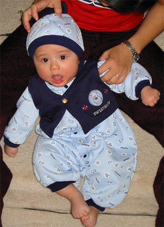 12/03/02 - 這件也很可愛!四個月前還都太大,以為回台灣大概可以穿得下,不過現在穿已經很剛好,大概沒辦法等到過年回台灣了。