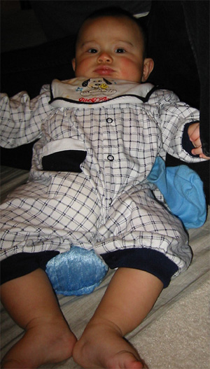 12/14/02 - 才剛把放到他的專屬便便桶,他馬上哭得驚天動地! 12/14/02 - 全家福要去參加party囉!