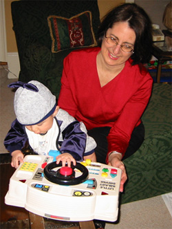12/21/02 - Andreas的同事夫婦Debbie and Al,那是他們女兒小時候的玩具,Luka幾乎是撲上去,然後就很快樂的玩起來,都忘記要哭了!