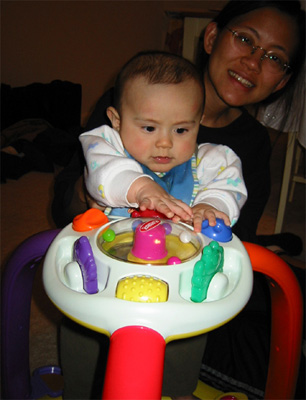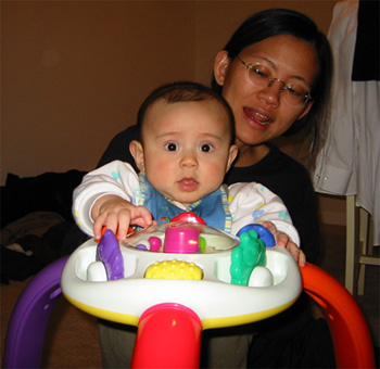 12/12/02 - 全副武裝,要去散步了。這是讓Luka停止哭泣的好辦法! 12/12/02 - 乖寶寶自己翻書看喔。