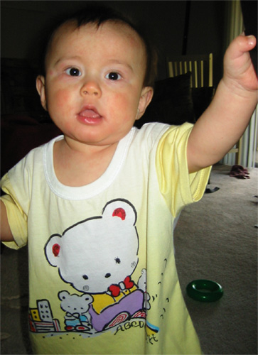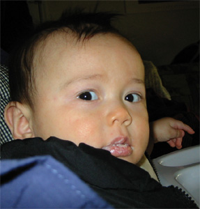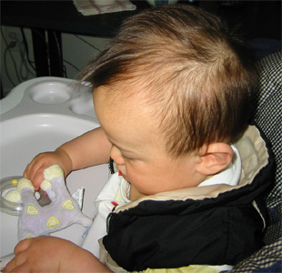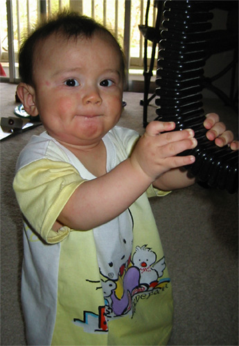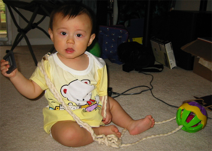 4/19/03 - Luka的第一個小女朋友Rachel,他似乎很好奇這小東西是什麼?!