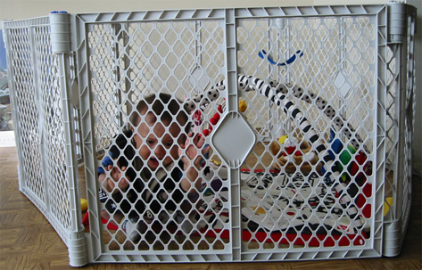 4/24/03 - Luka不喜歡被關在裡面,每次都又哭又叫的,直到被放出來為止!不過還是比在廚房翻箱倒櫃的好