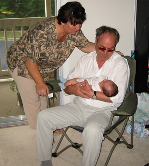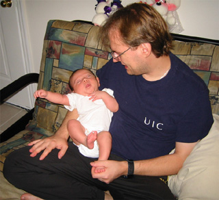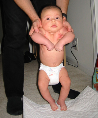9/11/02 - 走來去換尿布.... 到了....爸爸的手也酸了!