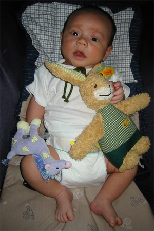 9/2/02 - 我會坐了....當然不是真的 臉也是圓鼓鼓的,看來我的母奶熱量挺高的!可是他還是常常沒吃飽的樣子,大胃王!