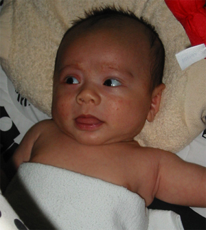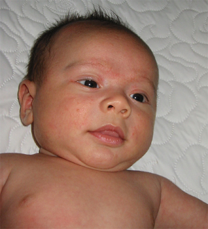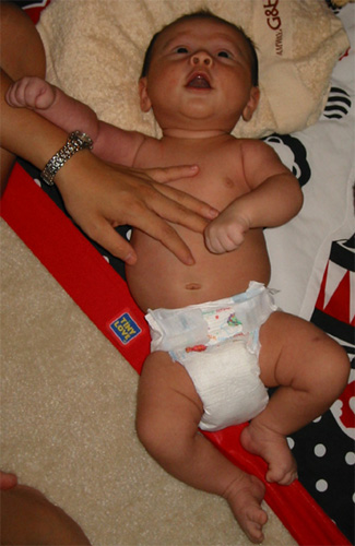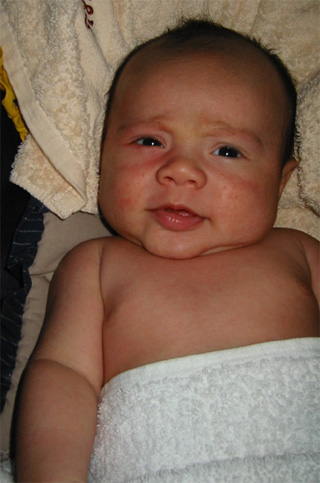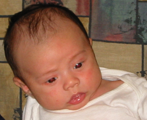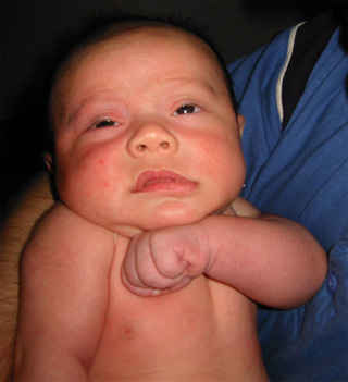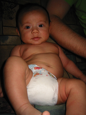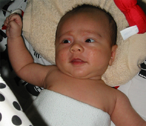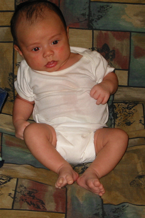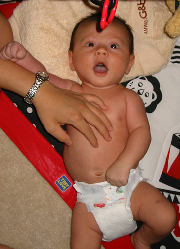 9/9/02 - Luka喜歡用手把奶嘴撥掉, 剛換完尿布,真舒服! 一副小大人的臉