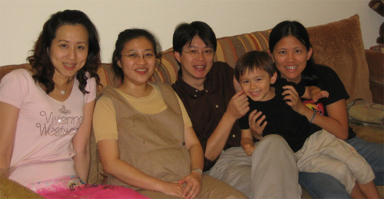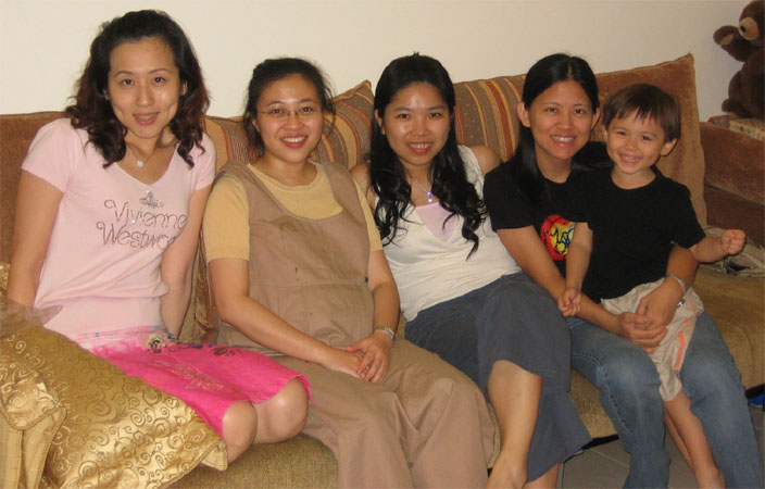 11/2/05 - 又回到台灣。這次因為必須辦新的美簽,所以先到台北幾天。這次乾媽已經學成歸國,雅慈阿姨則是個大肚子阿姨,所以我們就跑去打擾乾媽啦。Luka果然比較偏好年輕的阿姨,跟這些阿姨們玩,一點都不怕生、不害羞,阿姨要走了,都還會依依不捨一番,直問為什麼阿姨要回家,還猛拉著不讓人走!可是一回到高雄,每次遇到姨婆、ㄅㄟˇㄅㄟˊ,就躲到媽媽腳後面,不然就拉著媽媽一直走開,都不會大方叫人了,也不知道在害羞什麼!