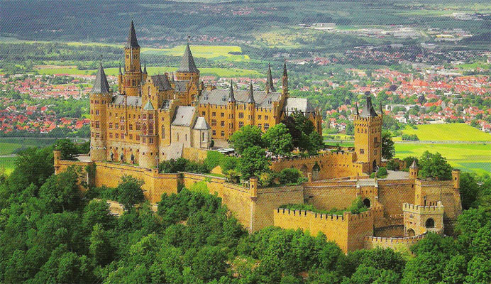 「霍亨索倫家族的發源地,德國南部最著名的兩大城堡之一,與新天鵝堡宛如童話般的外貌相比,霍亨索倫堡就似充滿英雄主義的陽剛之氣。」這是網路上某個旅行團行程對這個城堡的描述。新天鵝堡的照片:http://www.schilling-momm.de/feng/Dec2003GermanyMainau_Chinese.htm