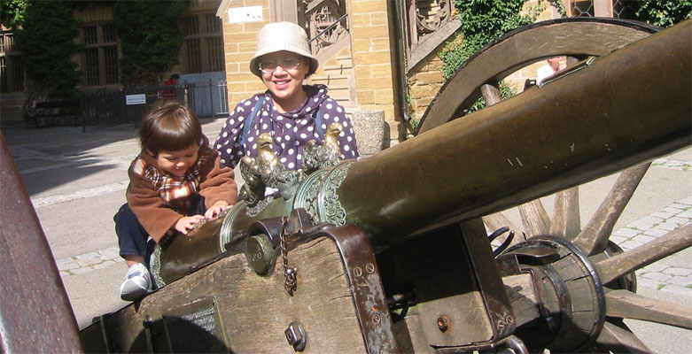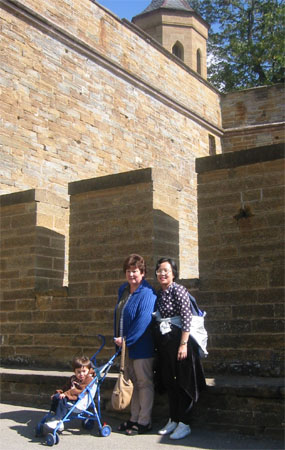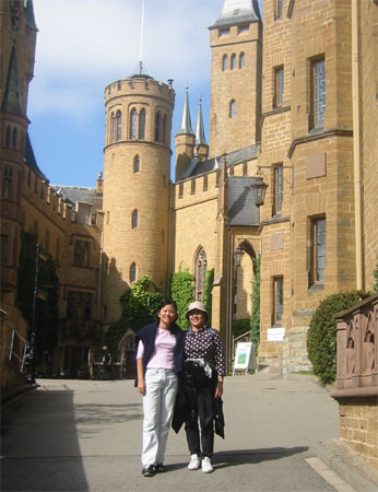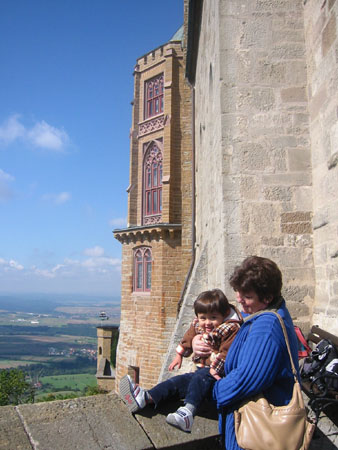 婆婆星期三傍晚就迫不及待地開了五個小時的車,先抵達Metzingen會兒孫。既然有車代步了,要到較偏遠的地方就比較方便,於是星期四我們就照我的計畫來到這個德國南部有名的城堡。新天鵝堡的外貌真的很像童話世界裡的城堡,不過這個霍亨索倫堡為什麼似充滿英雄主義的陽剛之氣,我就怎麼也感受不出來了。倒是覺得這個城堡比較真實、曾歷經數代居住的感覺,不似新天鵝堡的虛幻感。至於是不是真的曾有數代霍亨索倫家族的子孫居住於此,我也不清楚,而霍亨索倫家族又是德國什麼重要的家族我也不甚了了,有興趣的人可在www.google.com鍵入霍亨索倫家族,然後就會有許多篇洋洋灑灑關於德國歷史的文章。〈對我這個對歐洲歷史了解不深的人來說,那些故事實在太長了,而且沒有前因後果的,實在沒什麼興趣了解。有興趣的人就請自行深入研究。〉