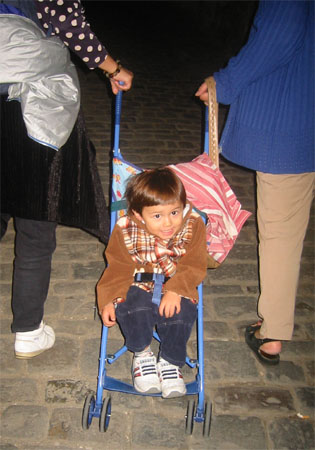右下照片裡的Luka可樂著呢!因為推車是走在石坂路上,而推車走過不平的路面是Luka的眾多怪癖之一。這次旅途中,每次要讓Luka坐上推車都要想盡辦法,而最常用也最有效的方法,就是告訴他我們要推他去「ㄉㄧ、ㄉㄧ」一下,會有很多「ㄉㄧ、ㄉㄧ」喔!這樣他才會甘願坐上去。〈「ㄉㄧ、ㄉㄧ」就是車子走過不平路面時,所發出的聲音,當然是由Luka自創的壯聲詞!〉
