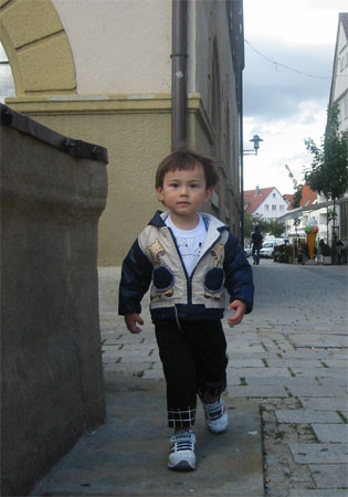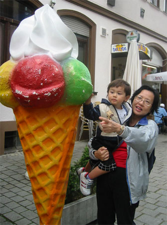 我們在德國是住在Metzingen這個小鎮上。出發前從網路少少的資料發現這個小鎮別名「名品村」,除了名牌Hugo Boss的總公司在那兒〈這也是老公去那兒出差的原因 - Hugo Boss是這次計畫的客戶〉,而且有一個價錢比一般百貨公司裡的Hugo Boss便宜的outlet之外,還有很多其他名牌的outlet,像是Esprit、Joop!、Lacoste、Belly、Nike等,以及各式各樣百貨、玩具、嬰兒用品的outlet。既然都住在名品村了,不花個一天逛逛這兒的outlet好像有點兒過意不去,於是星期三我們又睡到自然醒,然後就開始我們的名品之旅。逛了一天,唯一的斬獲就是Hugo Boss的幾件襯衫和Luka的一件玩具,因為其他outlet的價錢其實還是都很「名品」!就像老公說的,除了Hugo Boss的outlet真的是outlet的價格外,其他的都只是名稱有outlet!不過即使Hugo Boss是outlet價錢,那個價錢還是很「名品」!若不是Luka的阿媽堅持來到Boss的大本營,應該為家中的男性成員各買一件襯衫當紀念品,〈真可惜Luka還不算!〉Luka的爹娘對於一件50歐元的襯衫,是絕對不會考慮的。〈Luka的爹穿上Boss的襯衫後:「這件襯衫到底貴在哪兒啊?穿起來沒有特別舒服啊!剪裁也跟其他的差不多嘛!」Luka的娘:「也許這是一件千年不破衫吧?!」果然是非常不崇尚名牌的夫妻倆!〉
