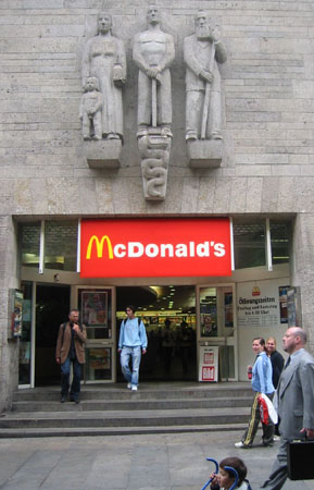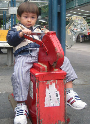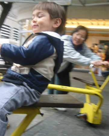 這個麥當勞招牌上有三個大人一個小孩的雕像,挺有趣的。這兒可是我們上廁所的好去處,不過都要酷酷地裝作沒看到廁所門口收錢的人。那個下方推嬰兒推車的路人甲就是Luka,沒錯!那個路人甲超愛推車,一點也不愛坐在上面,而路人甲的爹娘阿媽超想坐在上面,偏偏坐不下!