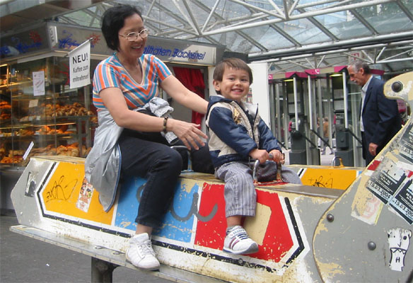 左下照片裡的Luka笑得很可愛,尤其那個大大的酒窩!阿媽也很美啦!至於背景那個麵包店,在德國到處都可看到像這樣的麵包店,感覺比在巴黎還多。德國真是個愛吃麵包的國家!來到這兒,對麵包不怎麼感興趣的我,也隨俗地吃了一堆麵包。